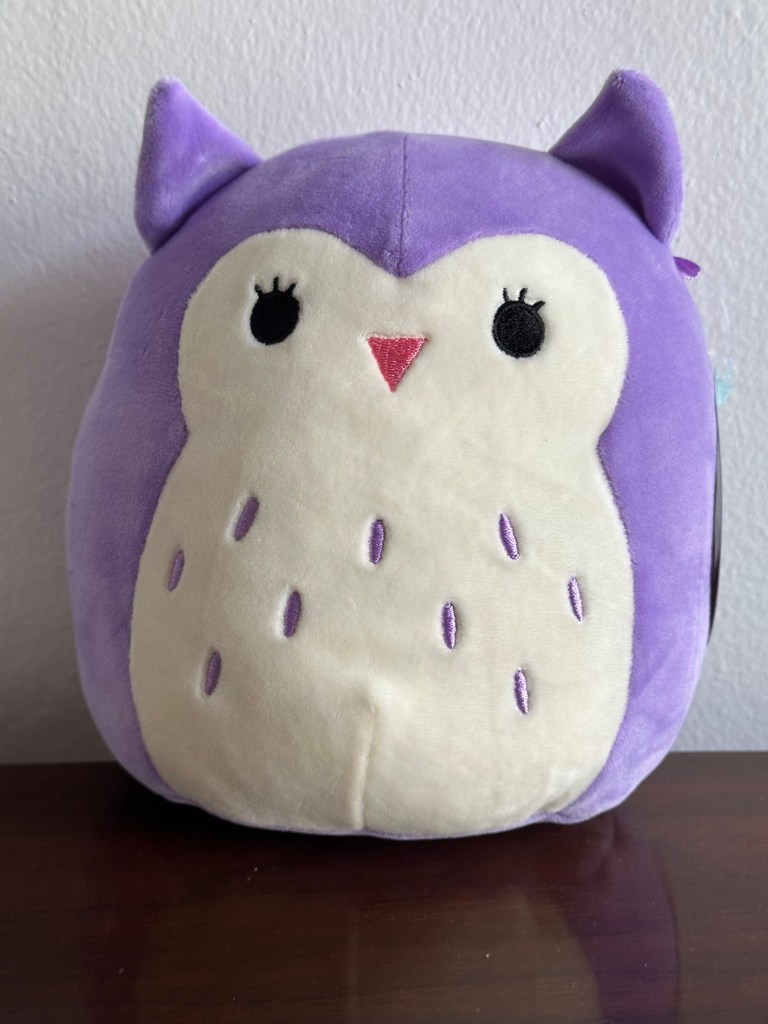 Purple, not flowers, stuffed owl
