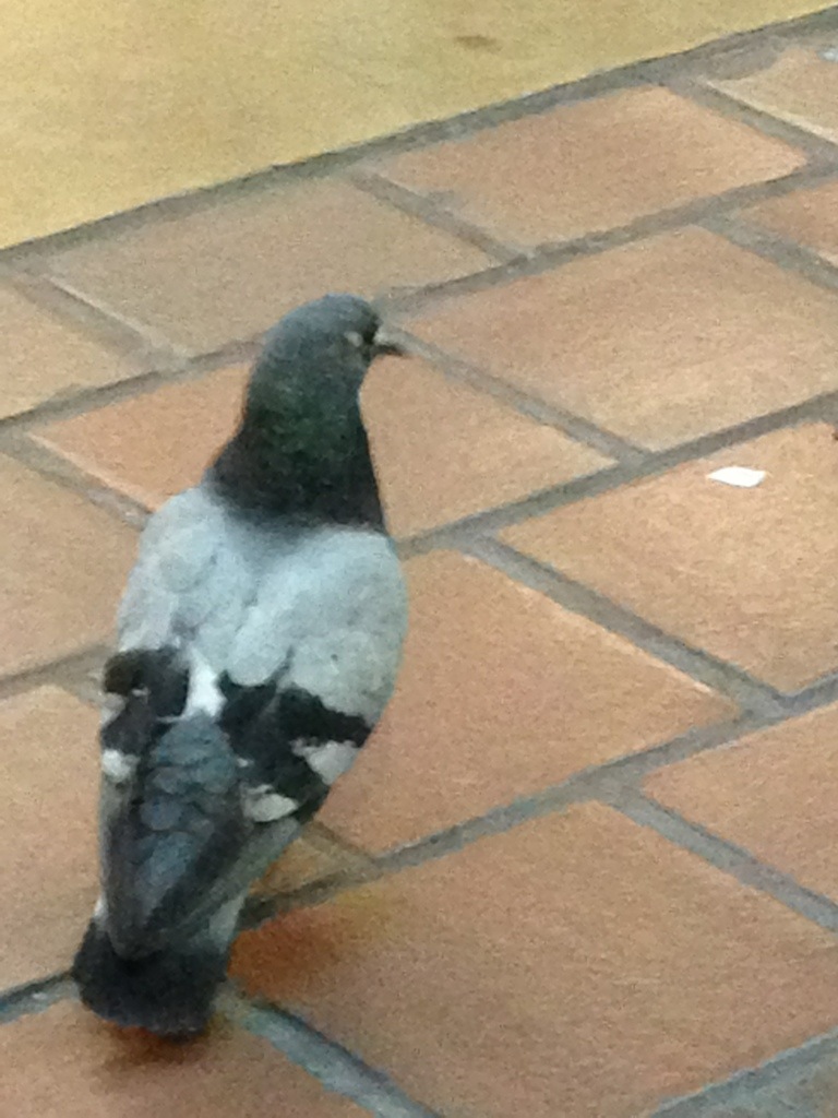 while he stands on the patio