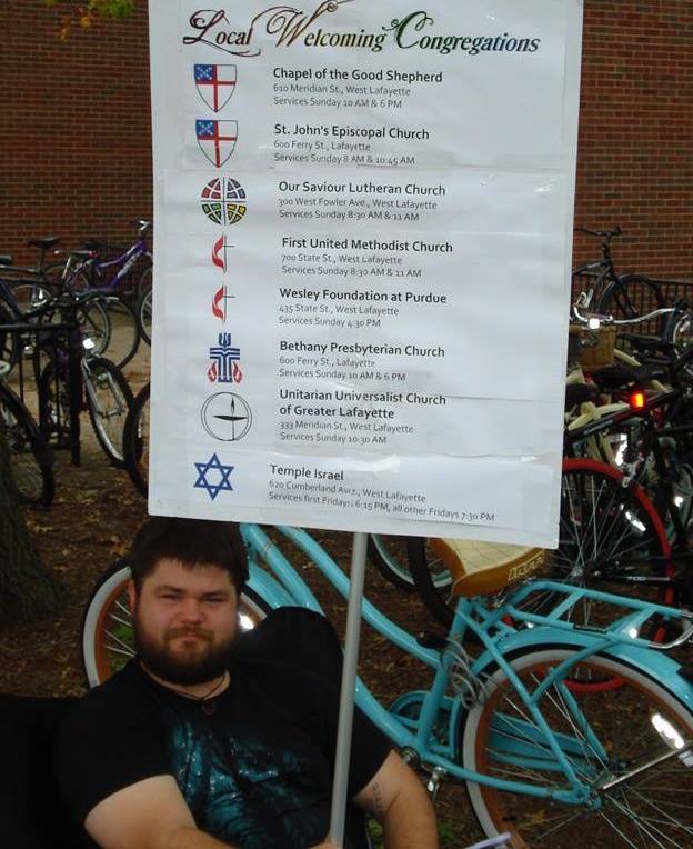 I’m telling you all this because, if you have a minute on Sunday, I’d like you to pass along my thanks to Noble Road Presbyterian Church for me. I can say with confidence that being raised in that particular community has shaped me into who I am today, and I am grateful for the influence. Even as I’ve personally moved on to other religious and spiritual traditions, I always remember the loving and welcoming community of Noble Road, and when faced with hatred and bigotry, I can always draw on my history there and be reminded that there are wonderful religious communities with better approaches. Noble Road did a fantastic job modeling not only acceptance of LGBTQ people, but actively fighting for them, particularly within the religious community, a fight I still consider absolutely essential. While I’m fairly confident I would be supportive of LGBTQ people regardless of where I grew up, I know that growing up in NRPC specifically was what gave me the energy and the passion to contact these congregations, create this display, and stand through the two brief rainstorms to keep making my point all afternoon.